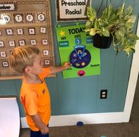 Each week has a different theme and we use hands on learning materials based around that theme to practice letters, numbers, and name writing.