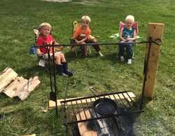 We get ready for lunch, provided by the playschool, sometimes cooked over a campfire.